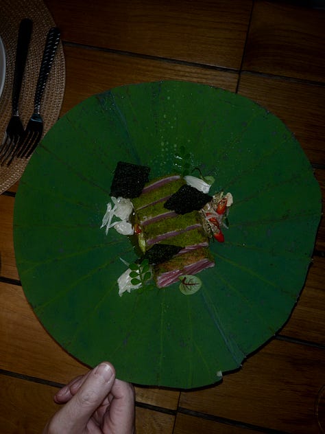 The next day we were back to the airport and to another place. We landed in Siam Rep at night and decided to have dinner in one of the restaurants in the hotel. It was this upscale restaurant, empty at that hour. They had two tasting menus to choose from, a vegetarian one and a regular one. I had a pomelo salad with scallops (told you, they love them) and a rib eye steak. I’m not one to love fruit in salads but it was wonderful. For dessert I had a coconut and chocolate thing that I can’t remember the name of but I dream of. Genuinely.