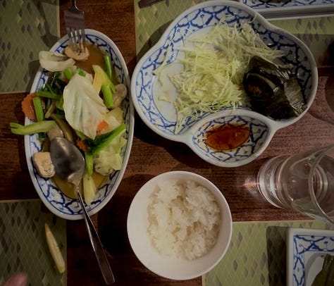 On the first day out in town we went to visit various places, a couple temples and a mall where we had lunch. We ate at a place a tour guide recommended and it was some sort of chain restaurant. Their whole shtick was making “homemade-style food”, whatever that means. We looked over the menu, picked a bunch of plates to share and waited for our server to come.